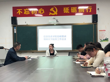随着当前疫情形势呈“多点散发、局部暴发”特点,为进一步加强疫情防控期间顶岗实习学生管理工作,保障实习健康、安全、有序开展,4月12日下午,信息技术学院紧急召开了当前疫情形势下顶岗实习管理工作会议。会议由副院长李静雯主持,招就办公室全体工作人员,毕业班辅导员、班主任参加会议。