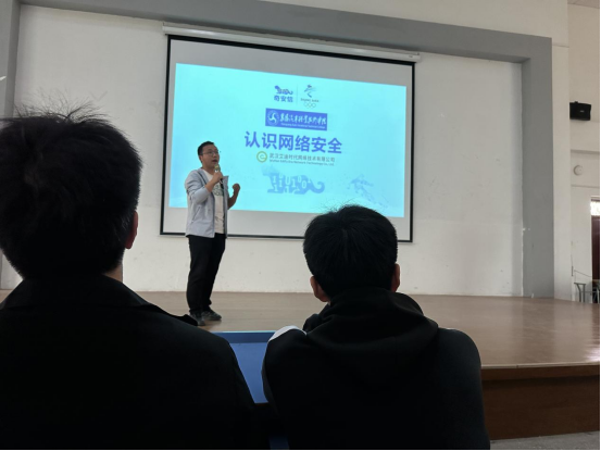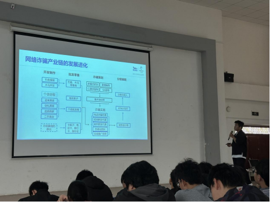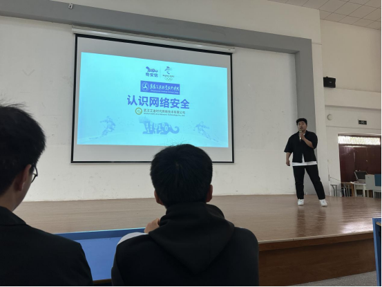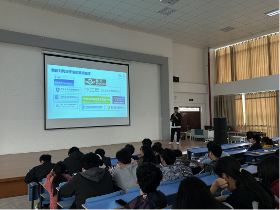 专题讲座上,艾迪时代技术部负责人丁鹏细详讲解了常见的网络安全威胁和攻击方式,包括病毒、木马、钓鱼攻击等,通过切实的案例,让同学们深刻认识到这些威胁的严重性和危害性。同时,还强调了国家层面对网络安全的重视,鼓舞了同学们深耕网络安全的士气。