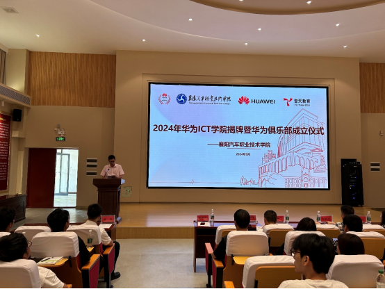9月26日下午,襄阳汽车职业技术学院6号楼1楼报告厅内,气氛热烈而庄重,襄阳汽车职业技术学院与华为技术有限公司携手举办的“华为ICT学院揭牌暨华为俱乐部成立仪式”在此隆重举行。此次活动标志着双方在产教融合、人才培养方面的合作迈上了新的台阶。