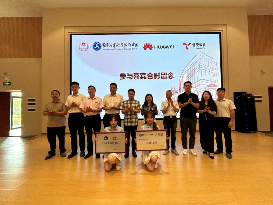在热烈的掌声中,包科杰副校长、范林芳总经理共同为“华为ICT学院”揭牌,标志着该学院正式落户襄阳汽车职业技术学院。紧接着,万艾波经理代表华为向襄阳汽车职业技术学院授予“华为俱乐部”牌匾,标志着双方在学生社团建设方面的合作又迈出了坚实的一步。