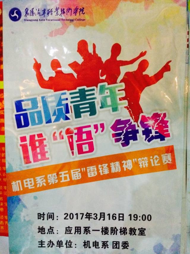 3月16日晚,襄阳汽车职业技术学院机电与电子信息工程学院“雷锋精神”辩论赛决赛在应用学院一楼阶梯教室内成功举行。