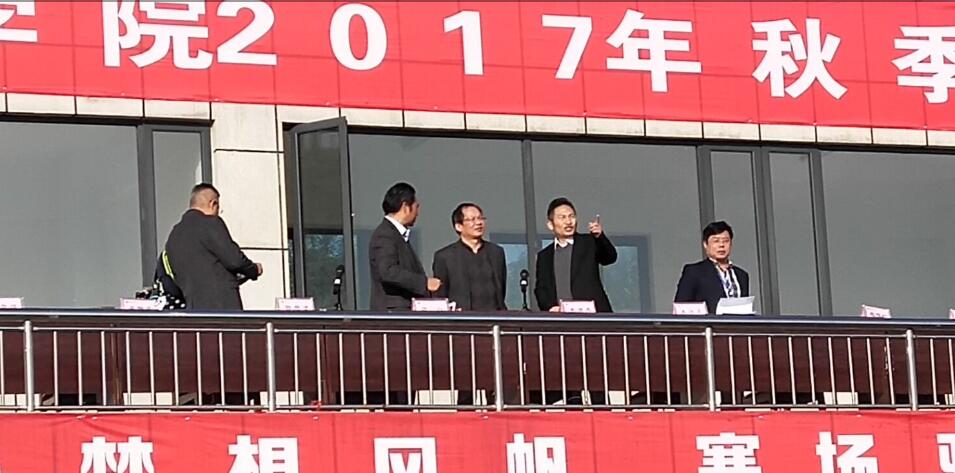 校党委书记许云宣布:襄阳汽车职业技术学院2017年秋季田径运动会开幕!会场上欢呼沸腾,大家用热烈的掌声迎接运动会的到来。