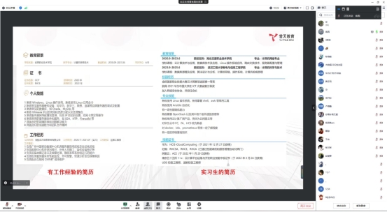 袁圆老师首先以学生的求职简历为切入点,深入浅出地介绍了华为认证体系与红帽认证体系。详细解读了这些认证的价值,并结合当前IT行业的就业情况,使学生们对这些认证体系有了更为清晰的认识。特别是针对华为认证体系的23个方向,袁圆老师进行了优势分析,使学生们对其有了全新的认知。