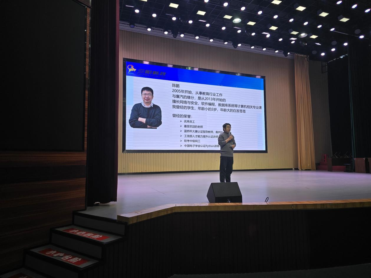 为深入贯彻工匠精神,助力学子精准锚定职业航向,提升专业素养与学习效能,12月18日下午,由人工智能学院主办的“大国工匠”进校园·匠心智造专题讲座在襄汽图书馆科学会堂隆重举行 。本次讲座特邀三阳教育高级讲师、拥有21年计算机行业从业经验的资深专家陈鹏老师主讲 。讲座吸引了来自物联网应用技术、集成电路技术、信息安全技术应用、大数据技术及软件技术等专业的24级、25级学子齐聚一堂,共同探索行业前沿,解码专业成长之路 。