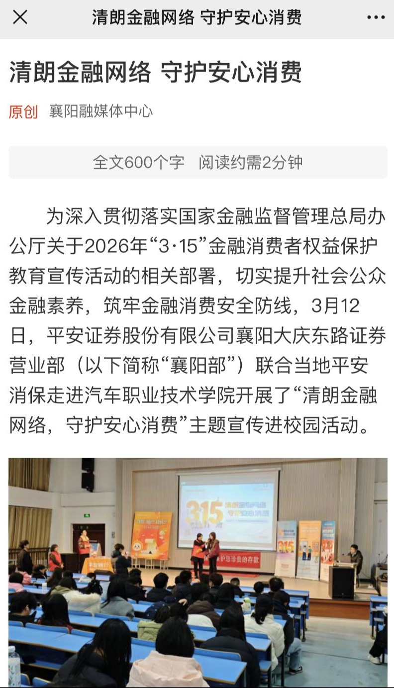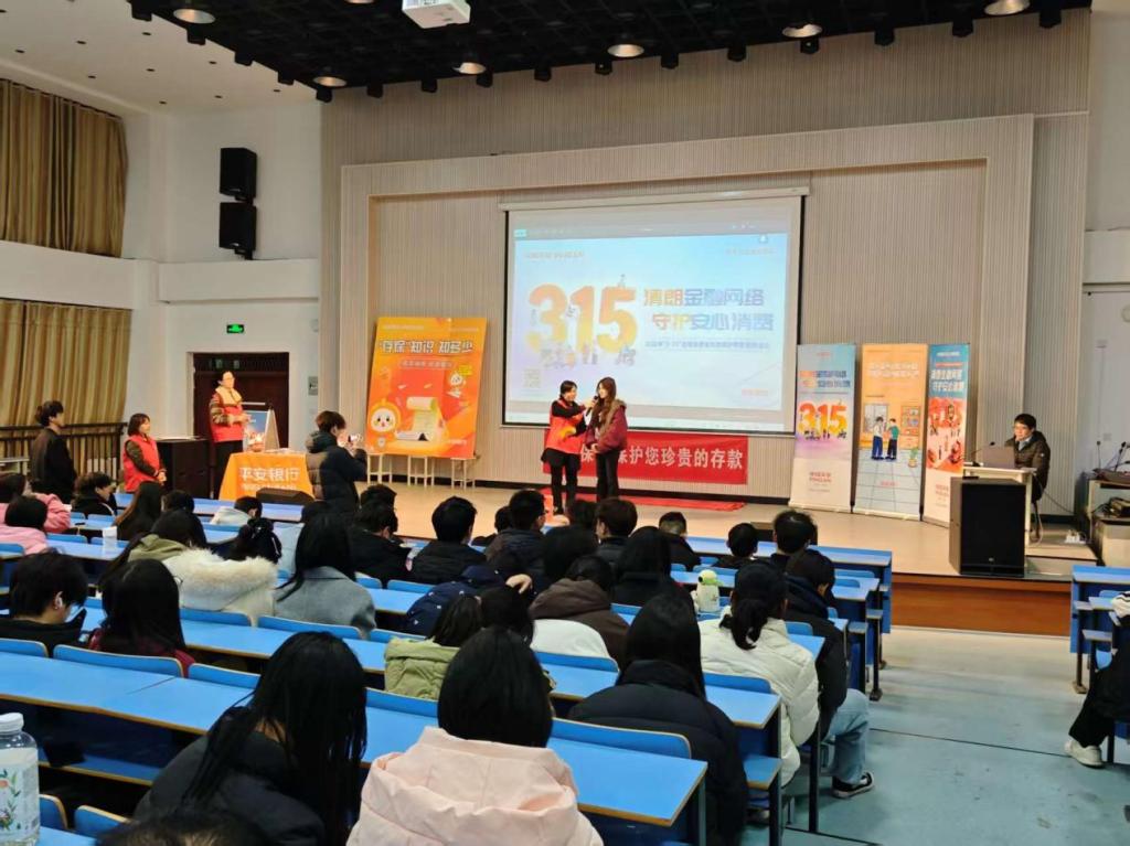 为深入贯彻落实校园安全工作部署,切实强化校园安全管理,提升学生自我防护意识和应急处置能力,充分发挥安全信息员的“哨兵”作用,3月12日,人工智能学院联合平安证券襄阳部及当地平安消保部门,结合“3·15”金融消费者权益保护宣传节点,开展安全信息员专题培训。各班寝室安全信息员及辅导员代表共250余人参加。