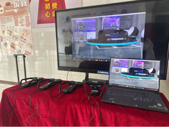 “MR 交互体验中心”(虚拟展厅交互区)成为全场焦点。基于课程成果,学生打造的 MR 茶文化馆与汽车展厅,通过手势、语音操控实现虚拟场景与现实空间的无缝叠加。参观者可 “亲手” 泡茶、拆解汽车部件,体验虚实融合的交互魅力,展现了虚拟现实技术在文化传播与工业教学中的创新应用。
