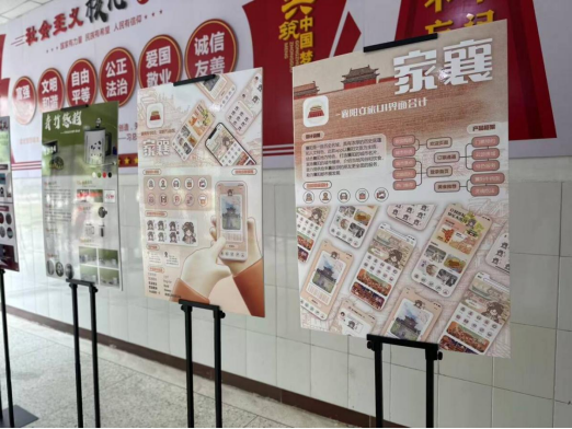 文创与UI 设计展区集中呈现 “以赛促学、学赛融合” 的育人成效。在文创设计赛道中,累计斩获省级二等奖以上荣誉多项,将课堂所学转化为落地作品。UI设计“家襄”,学生以襄阳文化为灵感,提炼古城墙、汉江、三国典故等元素,打造襄阳文旅IP 形象及 AR 文旅导览系统,实现数字技术与地方文化传播的深度融合,践行 “以赛促教、服务地方” 的育人目标。
