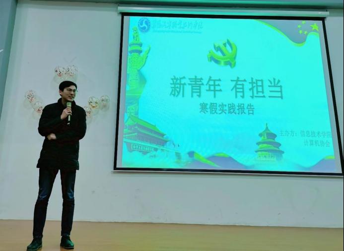 为丰富学生校园文化生活,提高同学们表达能力,展现当代学生的精神风貌。3月22日晚,信息技术学院在1号教学教301阶梯教室举办以“新青年 有担当”为主题的寒假实践报告演讲比赛决赛。信息技术学院副院长廖谦,计算机协会指导老师李雄锋以及学院4名辅导员老师作为评委出席本次比赛活动。廖谦为本次活动致开幕词,开展寒假实践活动,是为全面培养学生的调研能力、社会实践能力、提高同学们对专业的认知程度和社会责任感的重要方式,新时代的中国青年肩负着建设社会主义现代化强国和实现中华民族伟大复兴的时代重任,希望同学们通过寒假实践,体验基层、充实自我、感悟人生,在实践中得真知、在实践中显担当。