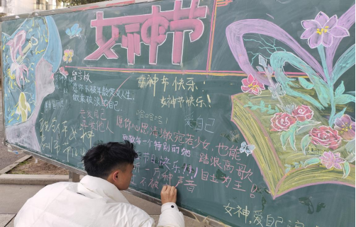 上午7:30,党委委员、副校长包科杰带领一众男教师早早地等候在学院门口,迎接每一位到岗的女教职工,送上精心挑选的鲜花和节日的祝福。春临盛世三月天,姹紫嫣红映红颜,图文并茂的黑板报让节日气氛更加浓郁,老师同学们纷纷留言,将美好的祝福送给信息技术学院的每一位“女神”。