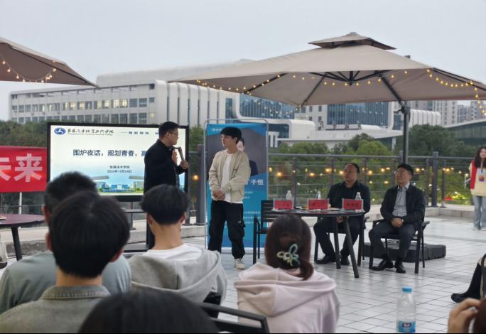 10月24日傍晚,信息技术学院开展了“围炉夜话,规划青春,赢在未来”座谈活动。活动由团总支书记龚子悦主持,特邀嘉宾丁子恒,学校党委委员、纪委书记李剑、就业创业指导中心副主任周姜圆、信息技术学院党总支负责人吴超、副院长张梦帆、学生科科长周楚阳,以及学校各院系学生代表参加,共同开启一场关于梦想与未来的对话。