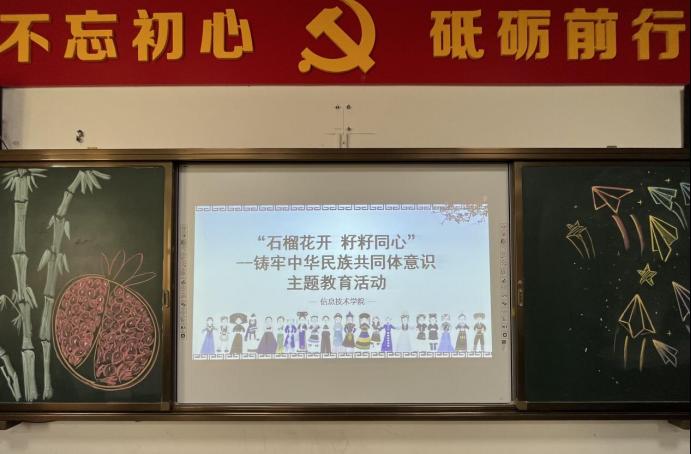 习近平总书记指出,铸牢中华民族共同体意识,各民族要像石榴籽一样紧紧抱在一起。为丰富校园文化生活,培养学生民族团结意识,增强民族自豪感,10月30日下午,信息技术学院举行“石榴花开,籽籽同心”—筑牢中华民族共同体意识主题教育活动,引导学院各族学生树立民族团结精神,用实际行动争做民族团结的“小小石榴籽”。学校党委委员、副校长傅强,学工处处长何峰,信息技术学院党总支部负责人吴超,学管副院长陈露,学管秘书周楚阳和学院各族学生代表参与本次活动。活动由学管党支部书记刘雪莹主持。