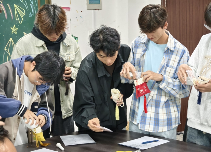 活动第三项互动交流环节,参与活动的师生可边制作香囊边进行交流和讨论。在这个活动中,大家可以共同制作想要香囊,感受到不同民族关于香囊的文化内涵。