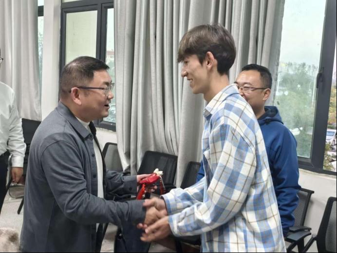 数字媒体2405班穆合麦提·麦麦提艾力也为其联系党员老师傅强送去了亲手制作的香囊和维吾尔族传统祝福。
