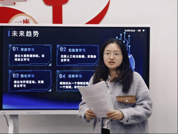 讲座上,陈老师及姚老师为同学们带来了主题为“人工智能技术发展及应用进展”的知识内容,“AI简史”“人工智能原理”“人工智能的前世今生”“AI辅助编程”“人工智能与各行业的跨界融合”“未来的发展趋势”等,同学们对计算机科学充满了打开“盲盒“般的激情。