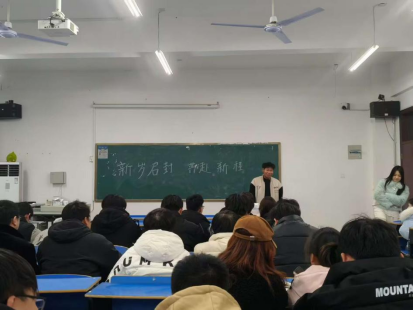 班会的第二个环节,学生代表上台分享自己的寒假见闻和新学期计划。有的同学分享了自己在寒假期间的返家乡社会实践活动经历,有的同学表示,新学期将更加努力学习专业知识,分享了自己的学习计划,有的同学计划利用课余时间考取相关资格证书,为未来的就业做好准备。
