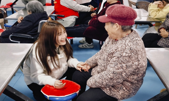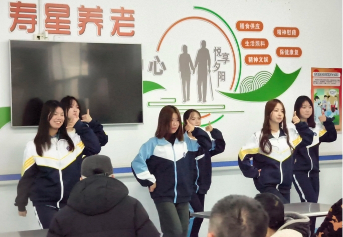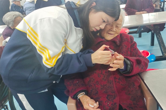 活动伊始,志愿者们迅速分组,各自展开行动。有的围坐在老人身边,通过“老物件里的旧时光”、“青春对话银发”等互动环节,聆听乡村医生翻山问诊的岁月,记录退休教师珍藏的教育故事。有的为老人表演精心准备的节目,唱歌、跳舞等轮番上演,同学们改编的经典红歌联唱《映山红》《南泥湾》引发全场大合唱,现场欢声笑语不断,掌声络绎不绝。还有的志愿者为老人修剪指甲、打扫房间、整理内务,仔细擦拭家具、清扫地面,让老人们的居住环境更加整洁舒适。