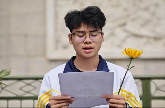 学生代表发言完毕,现场奏响庄严肃穆的悼乐。低首肃立间,师生共缅先烈魂,默然六十息。随后,周老师为大家讲述那段波澜壮阔的革命历史。从艰苦卓绝的战争岁月,到激情燃烧的建设年代,先烈们为了国家独立、民族解放,不惜抛头颅、洒热血。并号召全体同学铭记历史,珍惜当下,以实际行动传承革命精神。仪式结束后,师生们向烈士纪念碑敬献鲜花,绕行瞻仰,寄托对革命先烈的无尽追思。