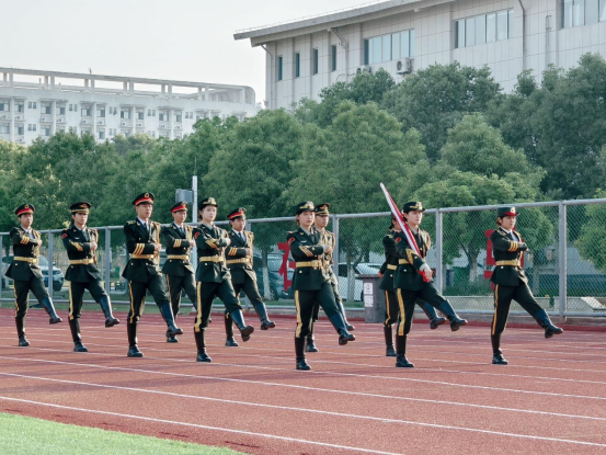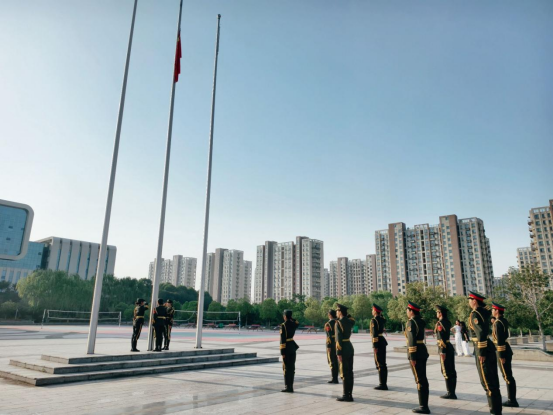 七时整,升旗仪式正式开始。迎着初升的朝阳,国旗护卫队迈着整齐有力的步伐,护卫着五星红旗走向升旗台。他们身姿挺拔、眼神坚毅,展现出新时代青年昂扬向上的精神风貌。随着激昂的《义勇军进行曲》响起,升旗手振臂一挥,鲜艳的五星红旗冉冉升起,全体师生庄严肃立,向国旗行注目礼,齐唱国歌,爱国之情在每个人心中激荡。