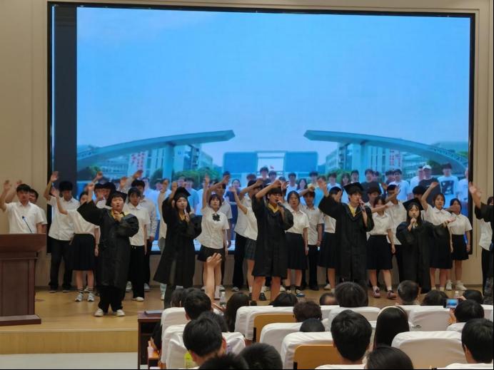 毕业典礼在庄严激昂的国歌声中拉开帷幕。全体师生起立,齐声高唱国歌,歌声响彻礼堂,传递着对国家的热爱与对未来的坚定信念。