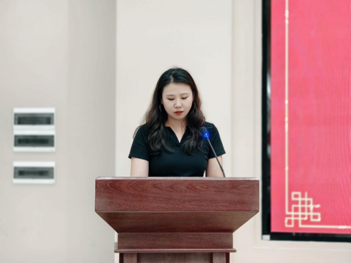 教师代表彭翌晖上台发言,她为毕业生送上真挚祝福与殷切嘱托。她回忆起与同学们相处的点点滴滴,从课堂上的激烈讨论,到实训室里的并肩作战,每一个场景都充满了师生间的深厚情谊。她鼓励同学们保持好奇心和求知欲,不断学习新知识,提升自己的能力;要勇于面对挫折,在困难中磨练意志,在逆境中寻找机会;更要坚守初心,秉持职业道德与社会责任感,用所学知识为社会创造价值。她的话语如春风化雨,滋润着毕业生们的心田,让大家感受到了老师的关爱与期望。