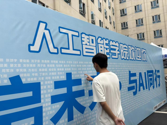 形式多样的入学打卡点、暖心的横幅标语、俏皮可爱的手持迎新板、各具特色的互动展板,为新生留下美好回忆,定格迈入人工智能学院的珍贵瞬间,让迎新氛围感拉满。
