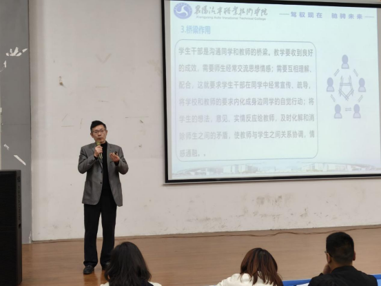 “学生干部的成长,既要‘读万卷书’,也要‘行万里路’。”既要做“老师的助手”,及时传递学院的政策要求;更要做“同学的伙伴”,主动倾听大家的需求困惑。他表示,希望同学们以此次培训为起点,把所学知识转化为工作实效,用实际行动为学院发展贡献青春力量。